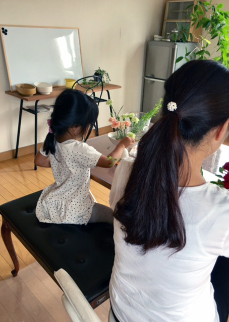 お子様も、花活けしたり、お絵かきしたり、宿題したりと、皆様一緒に楽しんでいただいております。