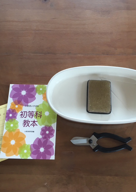 初等科教本、基本花器、剣山、花ばさみの4点が必要です。